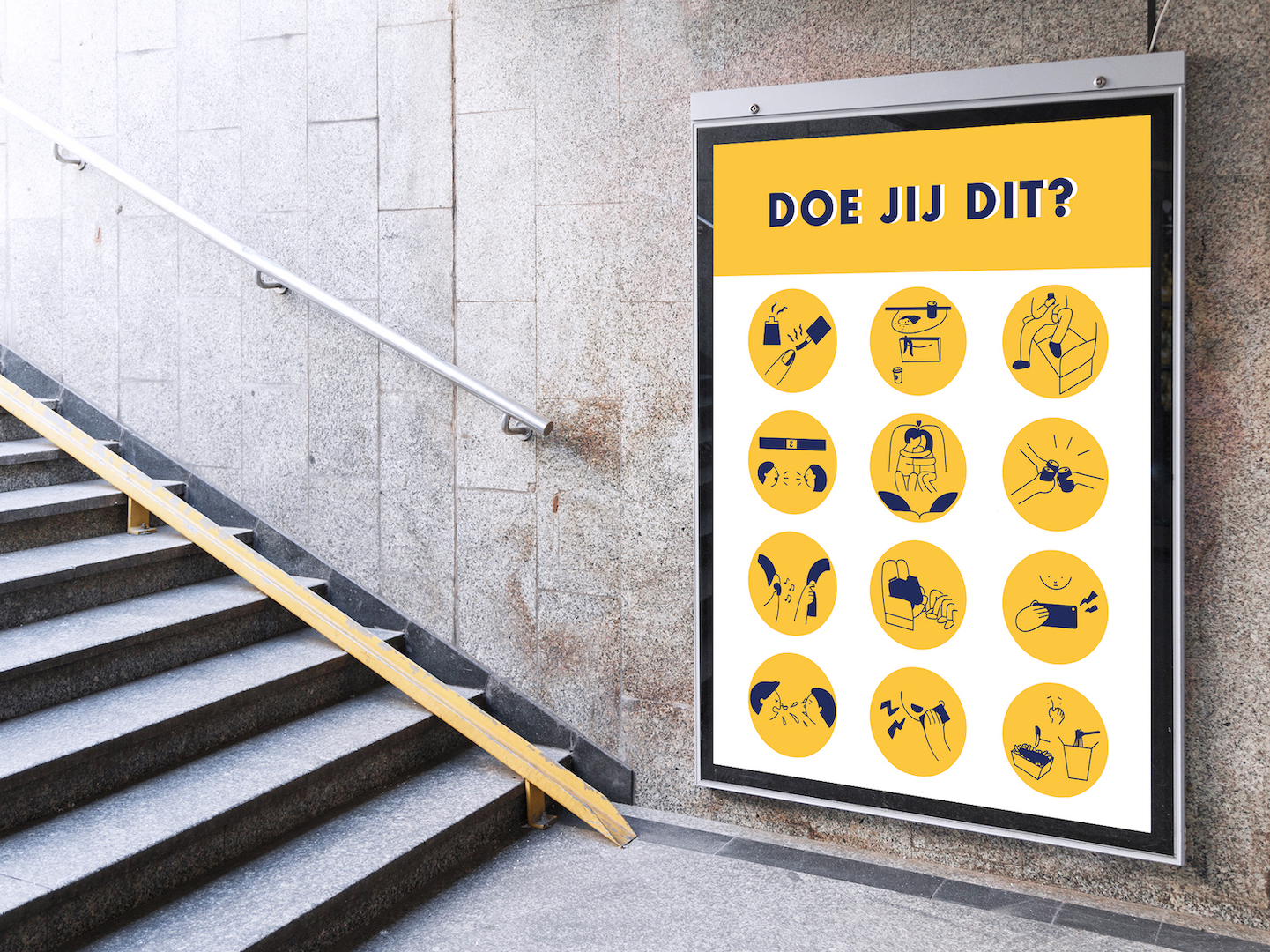 Train Etiquette Poster “Do you do this?”“Doe jij dit?” Poster to raise awareness of unpleasant behaviors on trains. Back to gallery ALL IMAGES © HARUNO ITO, 2024 | ALL RIGHTS RESERVED Follow